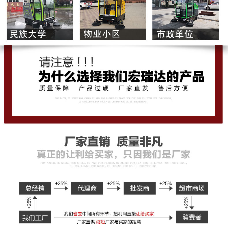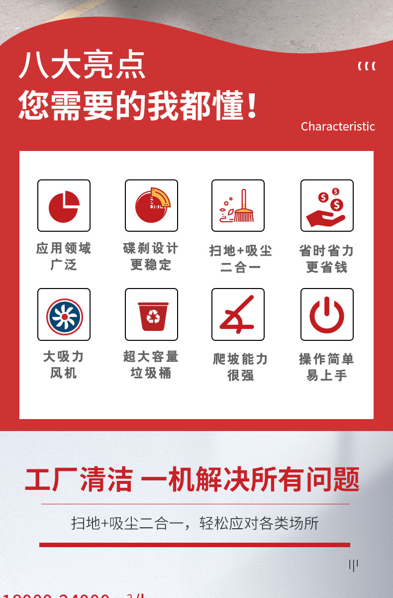- HRD-2200高壓清洗霧炮四輪掃地車及清掃、灑水、噴霧、清洗為一體,清掃寬度可達2300mm,可連續(xù)工作6-8個小時,灰塵 石子 落葉 煙頭煙灰 木屑 瓜果等一掃而凈,特別適合煤礦、水泥廠、雕刻廠、面粉廠、建材廠、金屬冶煉廠、工廠車間、商場、車站、學(xué)校、機場外圍、廣場公園、景區(qū)等場所使用。