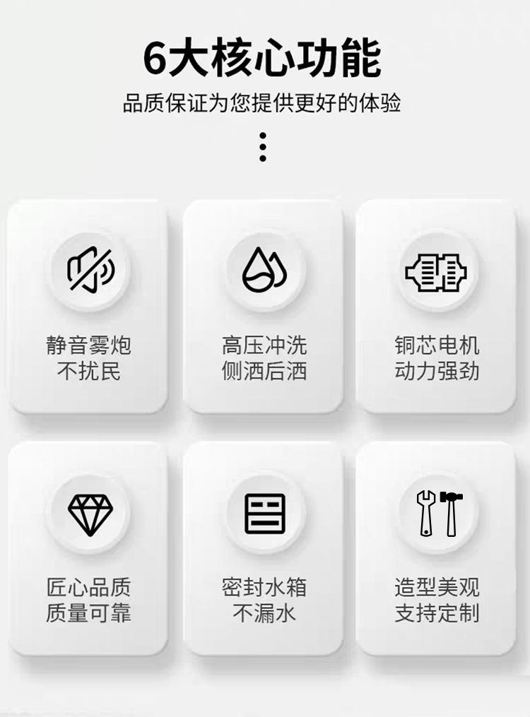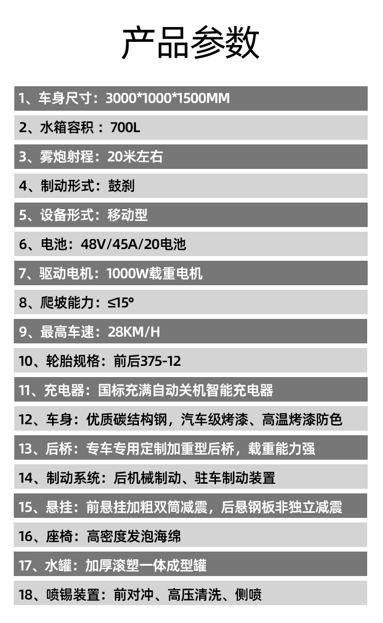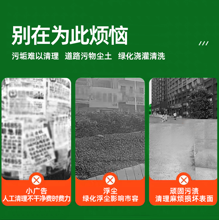 - 高端清洗車,主要用于城市人行道、輔道、路沿石的快速?zèng)_洗和保潔,以及城市小廣告清 理、果皮箱和垃圾桶沖洗、地面污垢去除、地磚還原本色、公交站牌沖刷、公共廁所沖洗等。 對人行道和輔道進(jìn)行快速保潔。車輛體積小巧,重量輕,通過性強(qiáng),且不會(huì)對人行道地磚,井 蓋等其他公共設(shè)施造成損壞。采用優(yōu)質(zhì)加重型電動(dòng)四輪車底盤操作簡單,載重性好,通過性 強(qiáng),普通環(huán)衛(wèi)工人即可操作。
