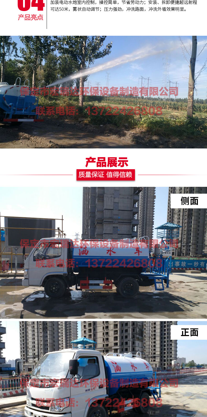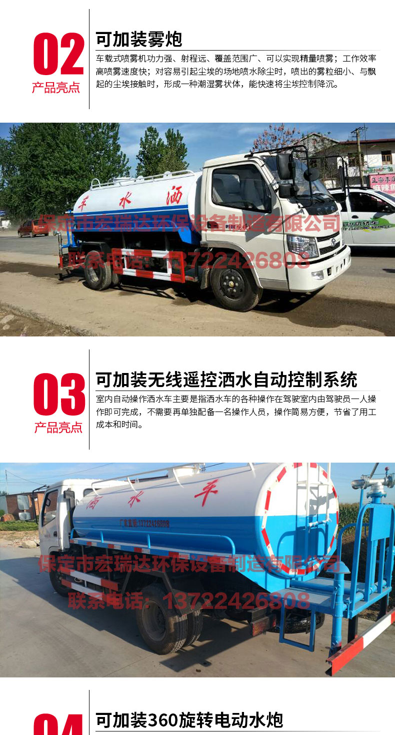 灑水車適合于各種路面沖洗,樹木、綠化帶、草坪綠化,道路、廠礦企業施工建設,高空建筑沖洗。具有灑水、壓塵、高、低位噴灑,農藥噴灑、護欄沖洗等功能,還具有運水、排水,應急消防。