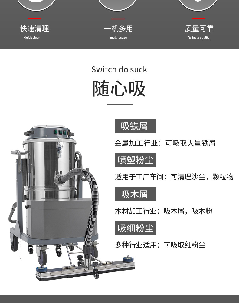 真空系列工業吸塵器是本公司專為工廠生產區內含有大量微細粉塵的吸塵或輸送物料的清潔設備,相比其它種類的吸塵器,它的突出特點是配有自動物理振塵清灰系統,可停機后自動清理濾筒,防止濾筒堵塞,保證設備的吸塵效果,保護電機免受過載。具有風量大、壽命長、噪音低、性能穩定,可長時間連續運作等顯著特點,能合理的配套于切削、打磨、鉆孔,印染,制藥,陶瓷制作等行業的設備的清潔工作,是市場上性能最完備,應用最為廣泛的吸塵器,既能回收固體顆粒物,又能凈化含塵氣體的多功能產品。